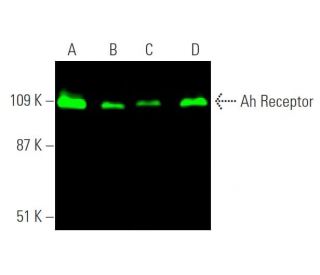 O Ah Receptor Antibody (A-3) é um anticorpo monoclonal de camundongo IgG2b κ Ah Receptor (também designado anticorpo do receptor de hidrocarboneto de arila ou anticorpo AHR) que detecta a proteína do receptor de hidrocarboneto de arila de origem de camundongo, rato e humana por WB, IP, IF, IHC(P) e ELISA. O Ah Receptor Antibody (A-3) está disponível tanto na forma de anticorpo não conjugado anti-receptor de hidrocarboneto de arila quanto em várias formas conjugadas de anticorpo anti-receptor de Ah, incluindo agarose, HRP, PE, FITC e vários conjugados Alexa Fluor®. A 2,3,7,8-tetraclorodibenzo-p-dioxina (TCDD) é o protótipo de uma família de compostos aromáticos halogenados tóxicos que supostamente causam efeitos adversos reprodutivos, imunológicos e metabólicos. Muitas respostas biológicas à TCDD são mediadas pela ligação do fixador ao receptor de hidrocarboneto aromático (Ah), também conhecido como AhR. O receptor Ah é um fator de transcrição dependente de fixador que interage com sequências específicas de DNA, denominadas elementos responsivos a xenobióticos (XREs), e que está ascendente aos genes induzidos por TCDD. Após a ligação com o fixador, o receptor Ah se liga ao translocador nuclear do receptor Ah (Arnt), e o complexo é translocado do citoplasma para o núcleo. O Arnt é necessário para que o receptor Ah se ligue ao XRE. O receptor Ah e o Arnt são membros de uma família de fatores de transcrição que contêm um motivo básico de hélice-alça-hélice e um motivo "PAS" comum.